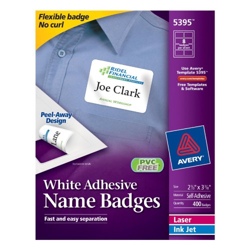 Avery Adhesive Name Badges, 2.33 x 3.38 Inches, White, Box of 400 (05395) Reviews,