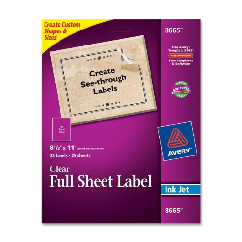 Special offer Avery Clear Full-Sheet Labels, Inkjet Printers, 8.5 x 11 Inches, Pack of 25 (8665) from Amazon