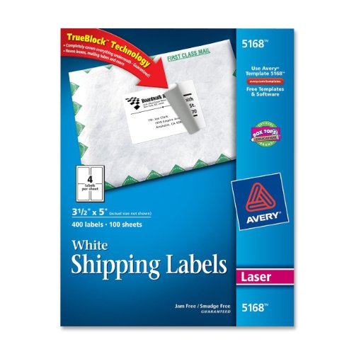 Special offer Avery Shipping Labels for Laser Printers with TrueBlock Technology, 3.5 x 5 Inches, White, Box of 400 (05168) from Amazon